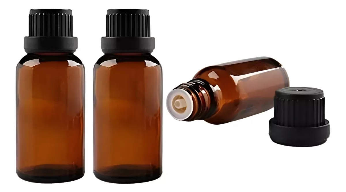Frasco de Vidro âmbar de com batoque gotejador para óleo essenciais