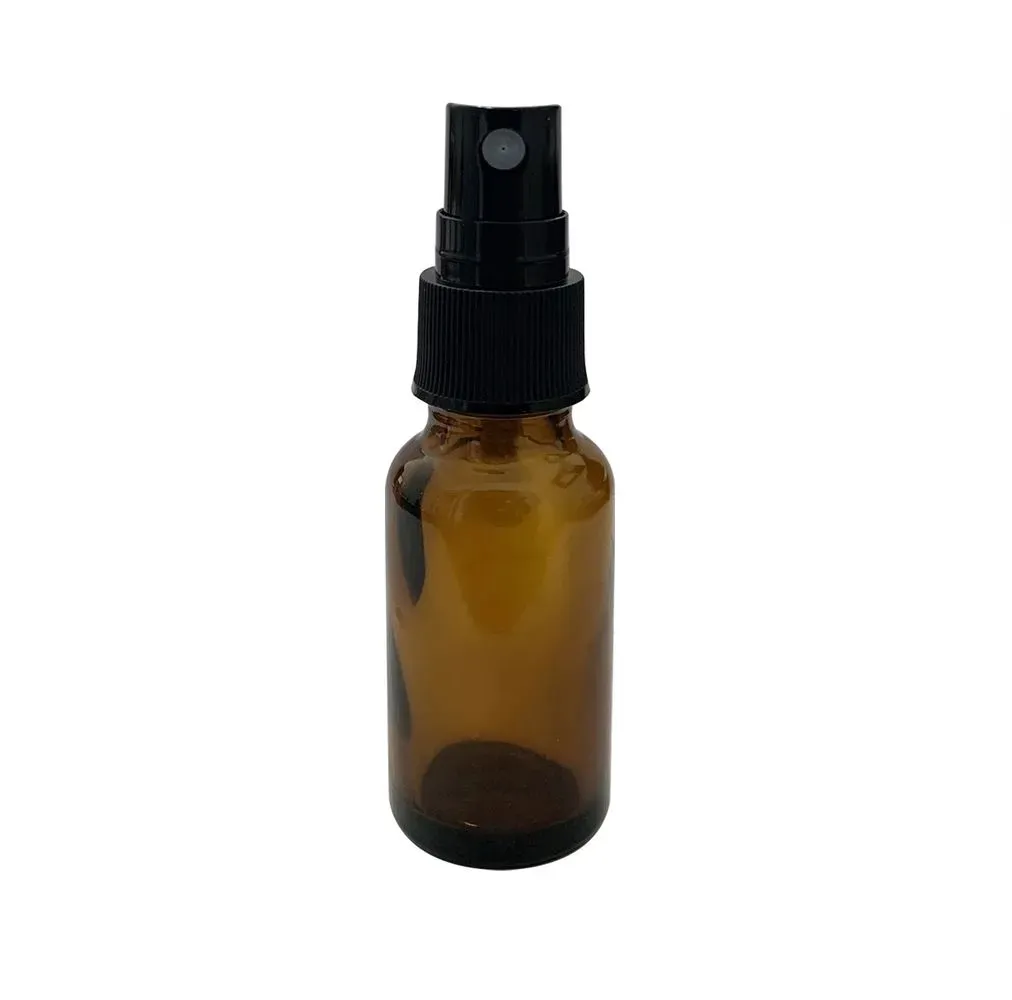 FRASCO DE VIDRO AMBAR 20ML COM VALVULA SPRAY PRETA ROSQUEAVEL