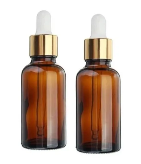 Frascos conta gotas Vidro Âmbar 30ml Tampa Dourada Bulbo Branco