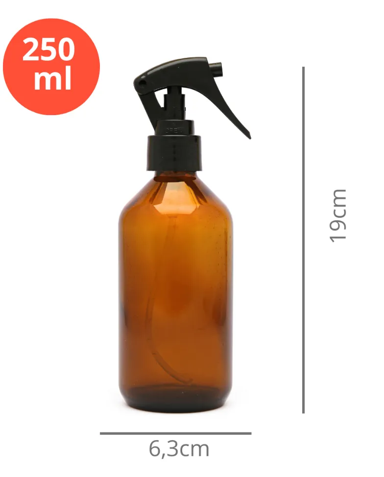 Frasco de Vidro Âmbar 250 ml com gatilho preto ROSCA 24